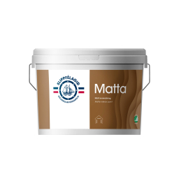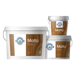 MATTA er vatnsþynnanleg akrýlmálning ætluð á loft og veggi innanhúss. Málningin hentar vel þar sem óskað er eftir mattri áferð. MATTA inniheldur hágæða 100% hreint akrýlbindiefni sem veitir málningunni litheldni og mótstöðu gegn gulnun. Málningin er notuð við nýmálun og endurmálun, er svo til lyktarlaus, gefur jafna áferð og er fljótþornandi.
